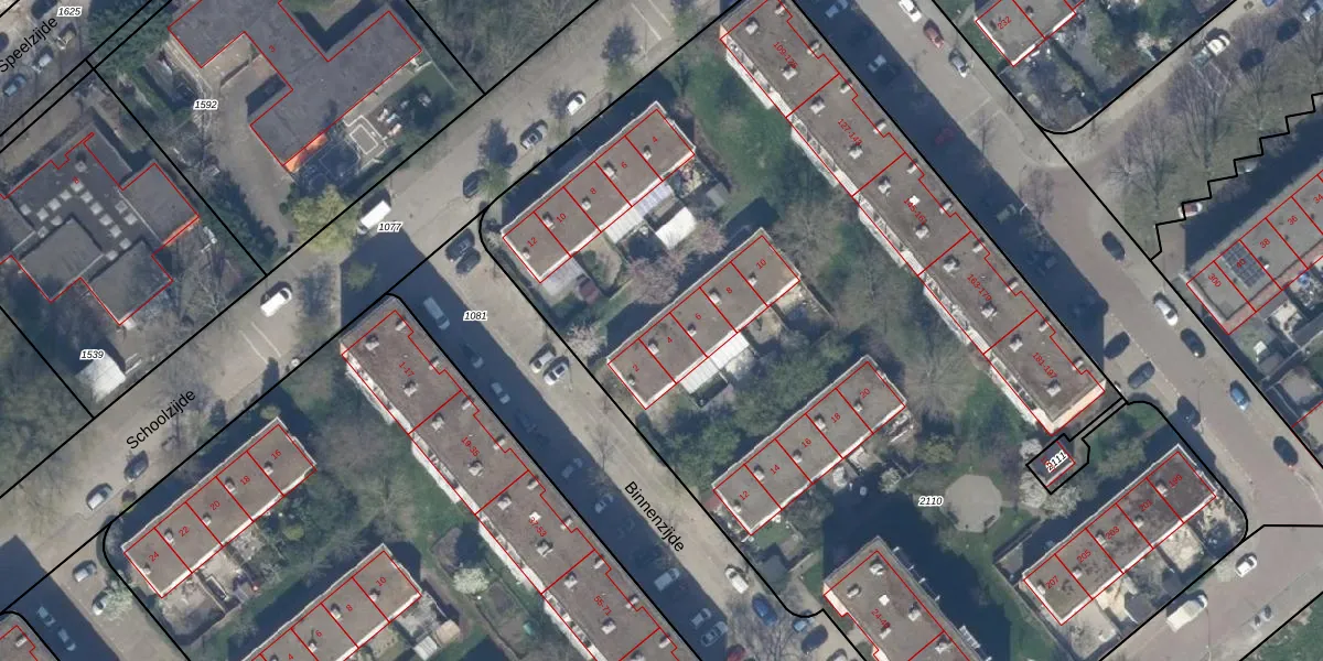 Het perceel waarop Binnenzijde 4 staat heeft een oppervlakte van 6536 m². Dit is een zeer groot perceel. De perceeloppervlakte wordt geregistreerd door het Kadaster. Gedetailleerde informatie over de maten van dit perceel kunt u vinden in het rapport Kadastrale kaart met maatvoering van Binnenzijde 4.
