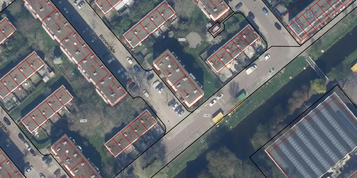 Het perceel waarop Binnenzijde 44 staat heeft een oppervlakte van 6536 m². Dit is een zeer groot perceel. De perceeloppervlakte wordt geregistreerd door het Kadaster. Gedetailleerde informatie over de maten van dit perceel kunt u vinden in het rapport Kadastrale kaart met maatvoering van Binnenzijde 44.