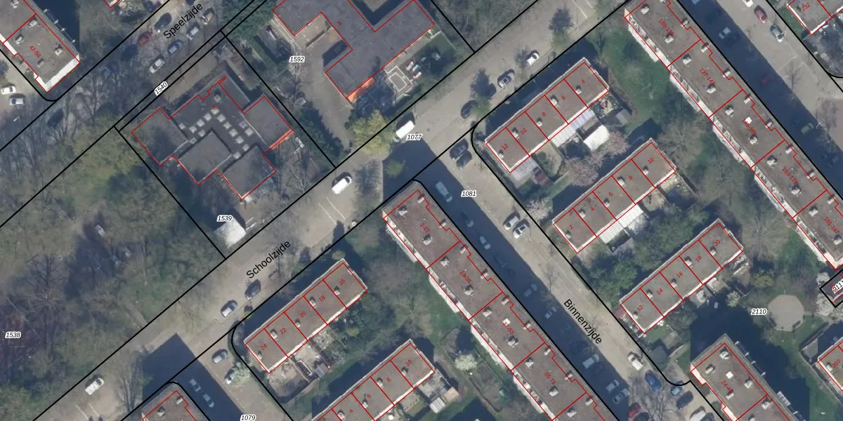 Het adres ligt op het perceel GVH37-AW-1080, dat zich in de kadastrale gemeente 's-Gravenhage bevindt. De oppervlakte van het perceel is 6618 m². Dat is groter dan gemiddeld in 's-Gravenhage, waar de gemiddelde perceeloppervlakte op 1320,78 m² ligt. De grootste perceeloppervlakte in de kadastrale gemeente is 12,9 ha. De kleinste oppervlakte bedraagt 0 m². Op het perceel liggen in totaal 76 adressen. De huidige grenzen van het perceel zijn digitaal in de Basisregistratie Kadaster (BRK) geregistreerd op 25-07-2003.
