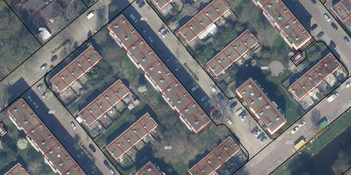 Het perceel waarop Binnenzijde 61 staat heeft een oppervlakte van 6618 m². Dit is een zeer groot perceel. De perceeloppervlakte wordt geregistreerd door het Kadaster. Gedetailleerde informatie over de maten van dit perceel kunt u vinden in het rapport Kadastrale kaart met maatvoering van Binnenzijde 61.