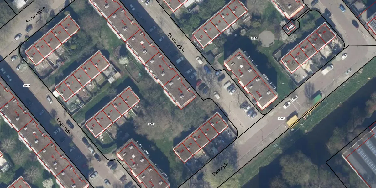 Het perceel waarop Binnenzijde 85 staat heeft een oppervlakte van 6618 m². Dit is een zeer groot perceel. De perceeloppervlakte wordt geregistreerd door het Kadaster. Gedetailleerde informatie over de maten van dit perceel kunt u vinden in het rapport Kadastrale kaart met maatvoering van Binnenzijde 85.