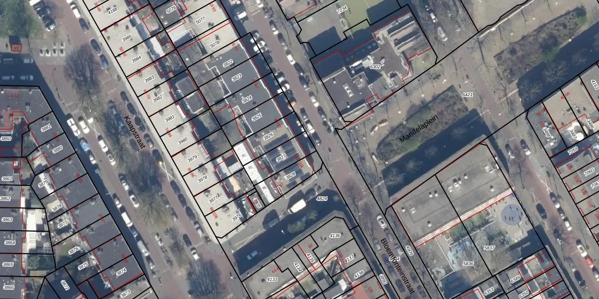 Het perceel waarop Bloemfonteinstraat 103 staat heeft een oppervlakte van 181 m². Dit is een middelgroot perceel. De perceeloppervlakte wordt geregistreerd door het Kadaster. Gedetailleerde informatie over de maten van dit perceel kunt u vinden in het rapport Kadastrale kaart met maatvoering van Bloemfonteinstraat 103.