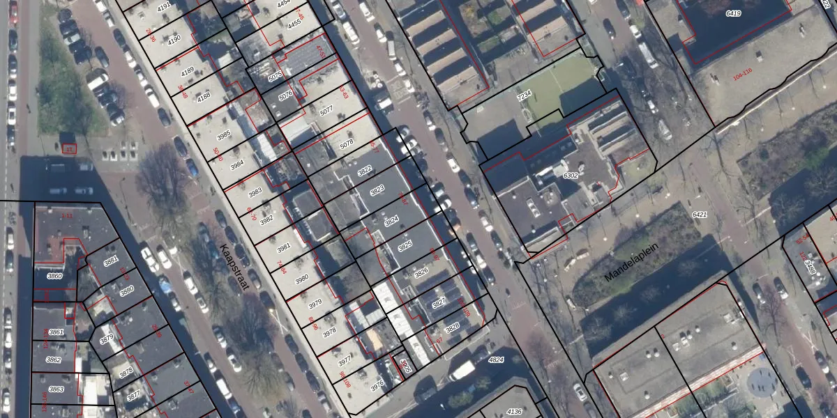 Het perceel waarop het adres ligt is GVH19-AB-3824. De afkorting 'GVH19' staat voor kadastrale gemeente 's-Gravenhage. De gemiddelde perceelgrootte in 's-Gravenhage is 366,58 m². Dit perceel is kleiner: de perceeloppervlakte bedraagt 182 m². Het kleinste perceel in de kadastrale gemeente is 0 m² groot. De grootste perceeloppervlakte is 2,7 ha. Er zijn 3 adressen aanwezig op het perceel. De huidige grenzen van het perceel zijn digitaal in de Basisregistratie Kadaster (BRK) geregistreerd op 18-09-2003.