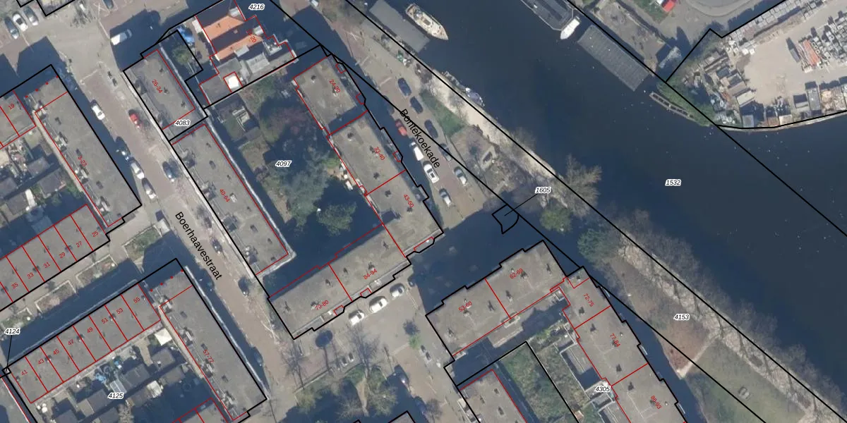 Bontekoekade 45 is gelegen op kadastraal perceel GVH21AD4097. Deze kadastrale aanduiding is uniek en wordt gebruikt door het Kadaster om eigendomsrechten en andere zakelijke rechten vast te leggen. Het perceel maakt onderdeel uit van de kadastrale gemeente 's-Gravenhage.