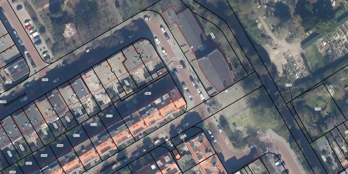 Bosbesstraat 64 is gelegen op kadastraal perceel LDN03I4982. Deze kadastrale aanduiding is uniek en wordt gebruikt door het Kadaster om eigendomsrechten en andere zakelijke rechten vast te leggen. Het perceel maakt onderdeel uit van de kadastrale gemeente Loosduinen.
