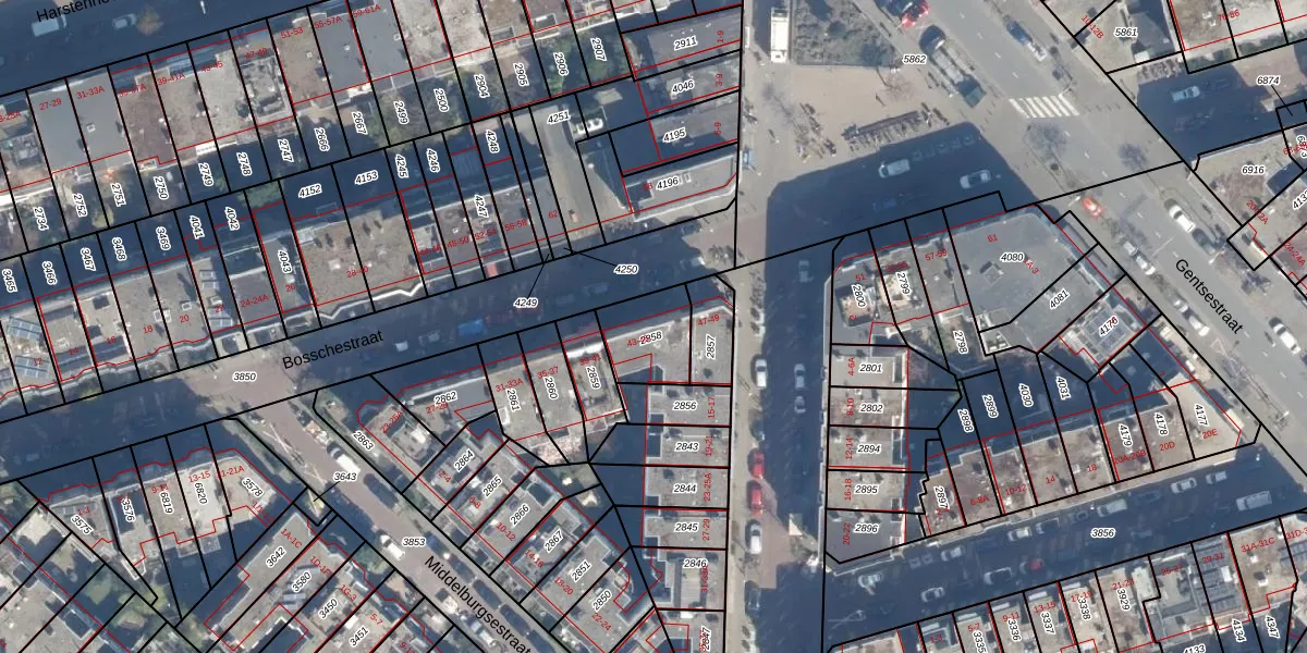 Bosschestraat 45 is gelegen op kadastraal perceel GVH14V2858. Deze kadastrale aanduiding is uniek en wordt gebruikt door het Kadaster om eigendomsrechten en andere zakelijke rechten vast te leggen. Het perceel maakt onderdeel uit van de kadastrale gemeente 's-Gravenhage.