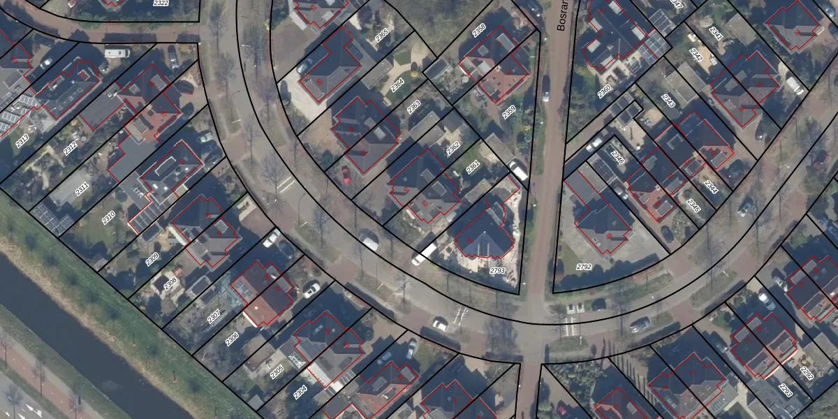Gebruik de zoekbalk of klik op een perceel voor informatie over de adressen binnen dit perceel.