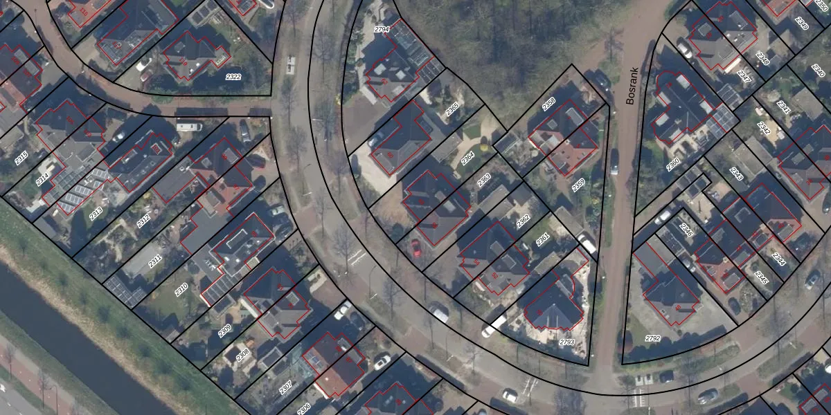 Gebruik de zoekbalk of klik op een perceel voor informatie over de adressen binnen dit perceel.