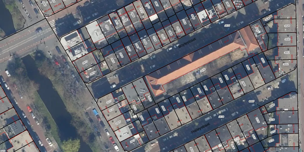 Het perceel waarop Boylestraat 20-G staat heeft een oppervlakte van 1560 m². Dit is een zeer groot perceel. De perceeloppervlakte wordt geregistreerd door het Kadaster. Gedetailleerde informatie over de maten van dit perceel kunt u vinden in het rapport Kadastrale kaart met maatvoering van Boylestraat 20-G.