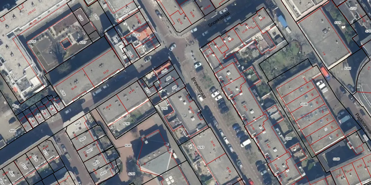 Breedstraat 110 is gelegen op kadastraal perceel GVH00C6242. Deze kadastrale aanduiding is uniek en wordt gebruikt door het Kadaster om eigendomsrechten en andere zakelijke rechten vast te leggen. Het perceel maakt onderdeel uit van de kadastrale gemeente 's-Gravenhage.