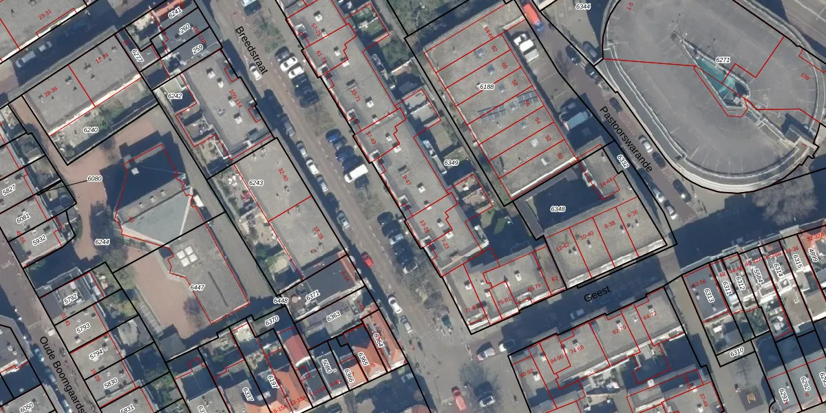 Het perceel waarop Breedstraat 15 staat heeft een oppervlakte van 2900 m². Dit is een zeer groot perceel. De perceeloppervlakte wordt geregistreerd door het Kadaster. Gedetailleerde informatie over de maten van dit perceel kunt u vinden in het rapport Kadastrale kaart met maatvoering van Breedstraat 15.