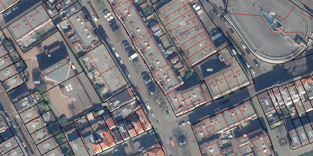 Het perceel waarop Breedstraat 19 staat heeft een oppervlakte van 2900 m². Dit is een zeer groot perceel. De perceeloppervlakte wordt geregistreerd door het Kadaster. Gedetailleerde informatie over de maten van dit perceel kunt u vinden in het rapport Kadastrale kaart met maatvoering van Breedstraat 19.