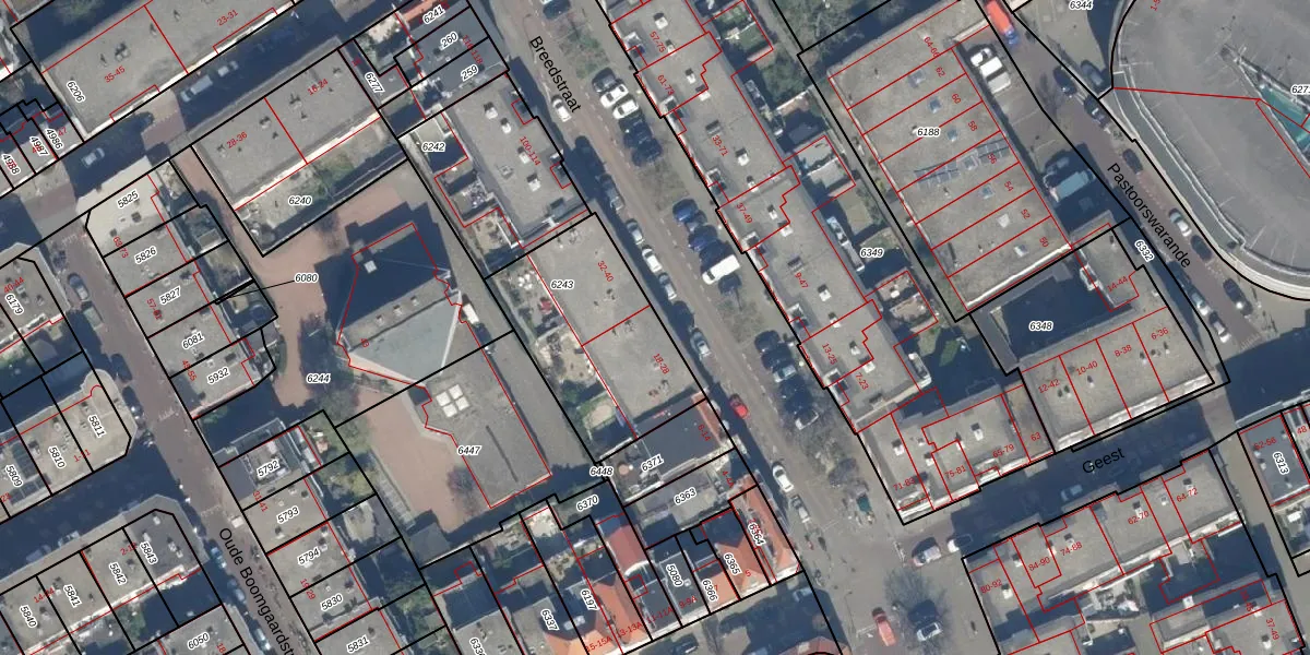 Het perceel waarop Breedstraat 24 staat heeft een oppervlakte van 675 m². Dit is een groot perceel. De perceeloppervlakte wordt geregistreerd door het Kadaster. Gedetailleerde informatie over de maten van dit perceel kunt u vinden in het rapport Kadastrale kaart met maatvoering van Breedstraat 24.