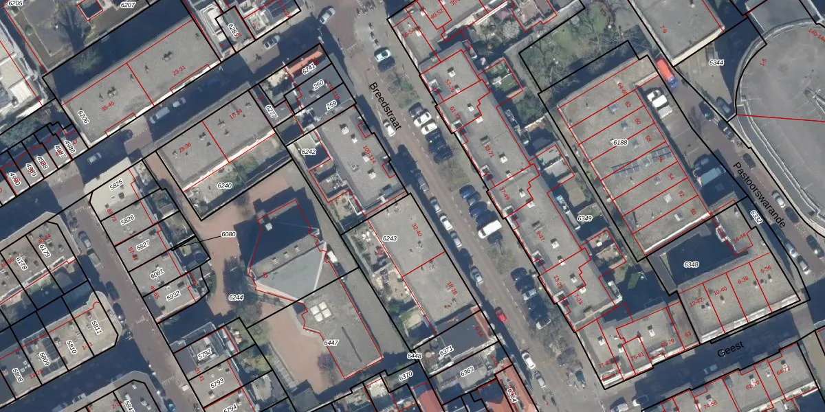 Het perceel waarop Breedstraat 38 staat heeft een oppervlakte van 675 m². Dit is een groot perceel. De perceeloppervlakte wordt geregistreerd door het Kadaster. Gedetailleerde informatie over de maten van dit perceel kunt u vinden in het rapport Kadastrale kaart met maatvoering van Breedstraat 38.