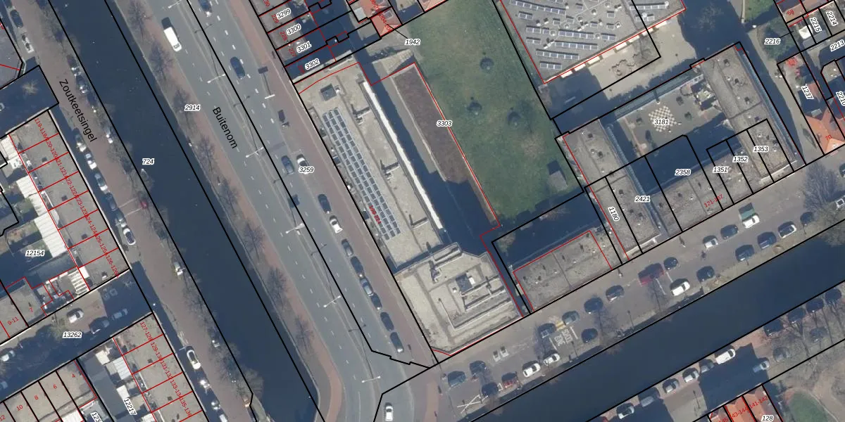Het perceel waarop Buitenom 202 staat heeft een oppervlakte van 3184 m². Dit is een zeer groot perceel. De perceeloppervlakte wordt geregistreerd door het Kadaster. Gedetailleerde informatie over de maten van dit perceel kunt u vinden in het rapport Kadastrale kaart met maatvoering van Buitenom 202.