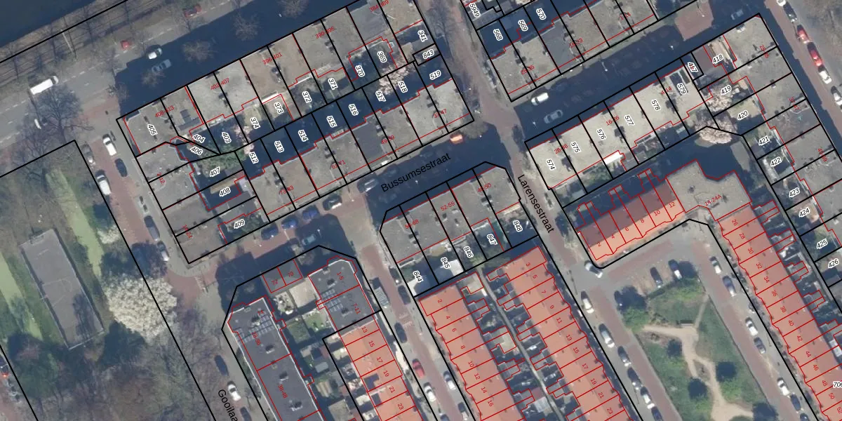 Het perceel waarop Bussumsestraat 66 staat heeft een oppervlakte van 143 m². Dit is een middelgroot perceel. De perceeloppervlakte wordt geregistreerd door het Kadaster. Gedetailleerde informatie over de maten van dit perceel kunt u vinden in het rapport Kadastrale kaart met maatvoering van Bussumsestraat 66.