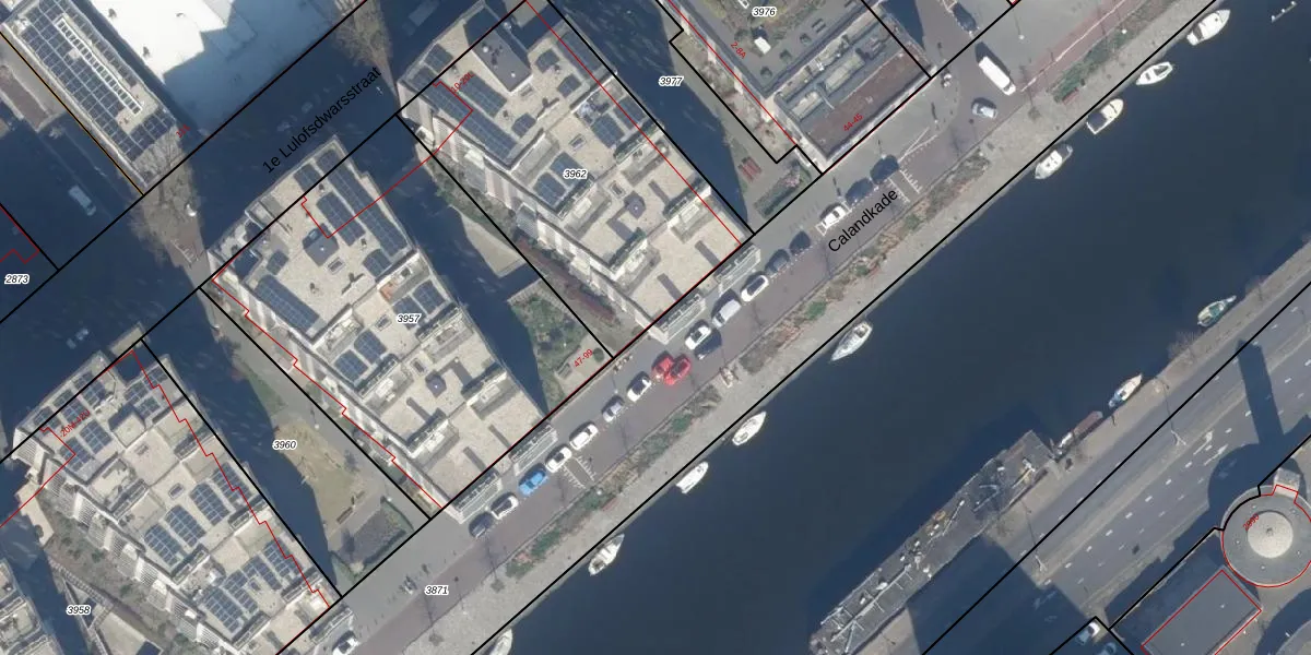 Het perceel waarop Calandkade 74 staat heeft een oppervlakte van 9455 m². Dit is een zeer groot perceel. De perceeloppervlakte wordt geregistreerd door het Kadaster. Gedetailleerde informatie over de maten van dit perceel kunt u vinden in het rapport Kadastrale kaart met maatvoering van Calandkade 74.