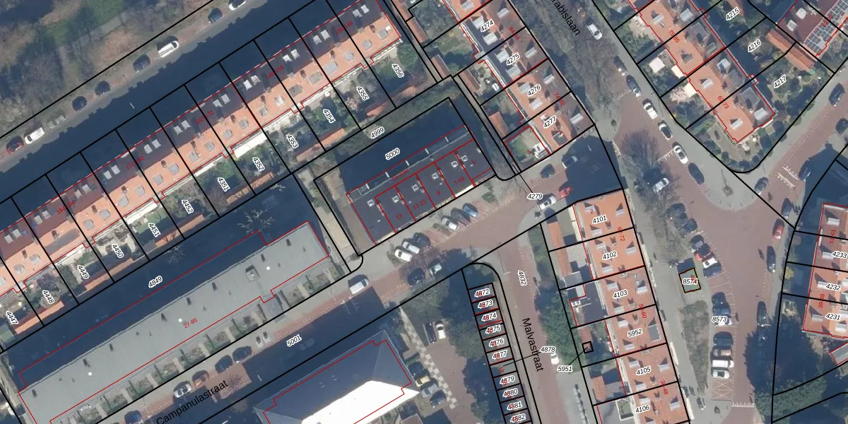 Het perceel waarop Campanulastraat 21 staat heeft een oppervlakte van 778 m². Dit is een groot perceel. De perceeloppervlakte wordt geregistreerd door het Kadaster. Gedetailleerde informatie over de maten van dit perceel kunt u vinden in het rapport Kadastrale kaart met maatvoering van Campanulastraat 21.