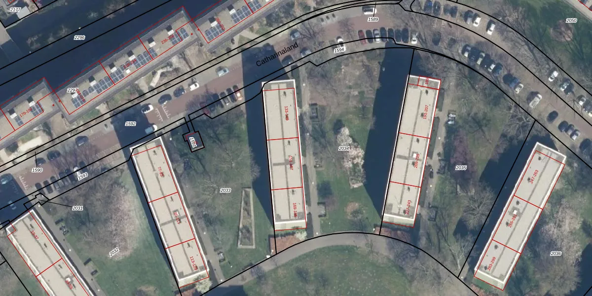 Catharinaland 157 is gelegen op kadastraal perceel GVH34AS2034. Deze kadastrale aanduiding is uniek en wordt gebruikt door het Kadaster om eigendomsrechten en andere zakelijke rechten vast te leggen. Het perceel maakt onderdeel uit van de kadastrale gemeente 's-Gravenhage.