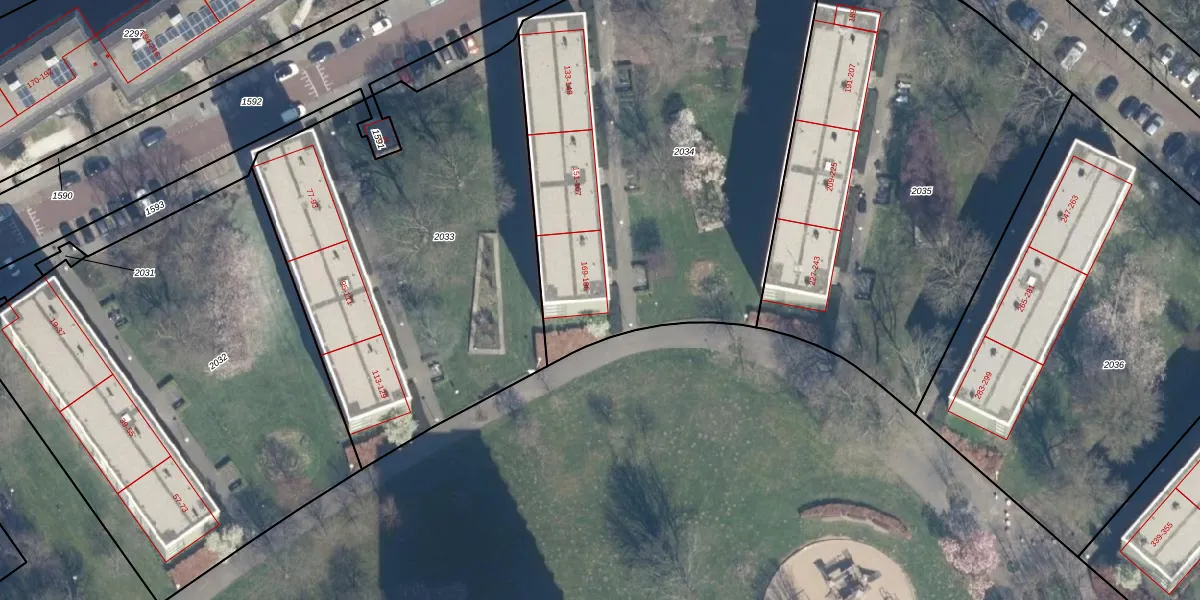 Het perceel waarop het adres ligt is GVH34-AS-2034. De afkorting 'GVH34' staat voor kadastrale gemeente 's-Gravenhage. De gemiddelde perceeloppervlakte in de kadastrale gemeente 's-Gravenhage is 1318,64 m². Dit perceel is met zijn 2614 m² dus groter dan gemiddeld. Het kleinste perceel in de kadastrale gemeente is 0 m² groot. De grootste perceeloppervlakte is 11,0 ha. Op het perceel liggen in totaal 24 adressen. In de Basisregistratie Kadaster (BRK) werden de grenzen van het perceel geregistreerd op 13-02-2018.