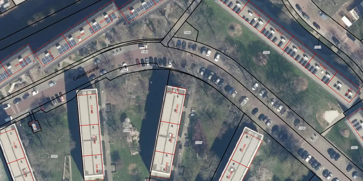Het perceel waarop Catharinaland 189 staat heeft een oppervlakte van 2400 m². Dit is een zeer groot perceel. De perceeloppervlakte wordt geregistreerd door het Kadaster. Gedetailleerde informatie over de maten van dit perceel kunt u vinden in het rapport Kadastrale kaart met maatvoering van Catharinaland 189.