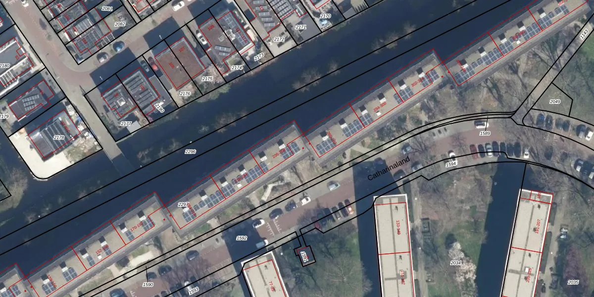 Het perceel waarop Catharinaland 248 staat heeft een oppervlakte van 8215 m². Dit is een zeer groot perceel. De perceeloppervlakte wordt geregistreerd door het Kadaster. Gedetailleerde informatie over de maten van dit perceel kunt u vinden in het rapport Kadastrale kaart met maatvoering van Catharinaland 248.