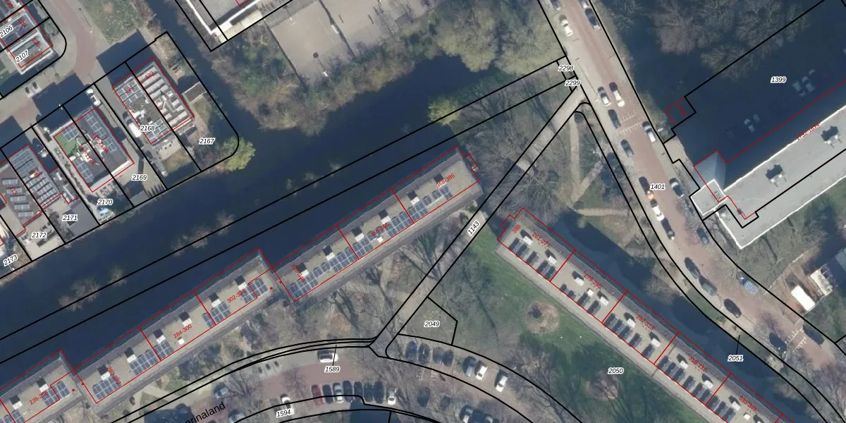 Het perceel waarop Catharinaland 368 staat heeft een oppervlakte van 8215 m². Dit is een zeer groot perceel. De perceeloppervlakte wordt geregistreerd door het Kadaster. Gedetailleerde informatie over de maten van dit perceel kunt u vinden in het rapport Kadastrale kaart met maatvoering van Catharinaland 368.