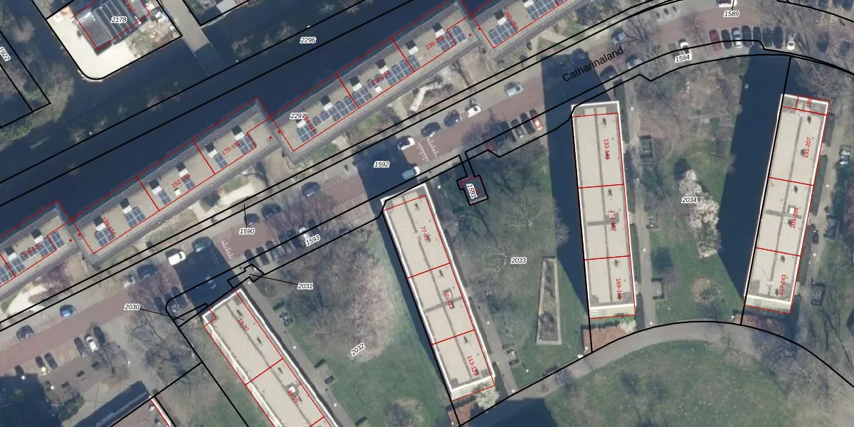Catharinaland 81 is gelegen op kadastraal perceel GVH34AS2033. Deze kadastrale aanduiding is uniek en wordt gebruikt door het Kadaster om eigendomsrechten en andere zakelijke rechten vast te leggen. Het perceel maakt onderdeel uit van de kadastrale gemeente 's-Gravenhage.