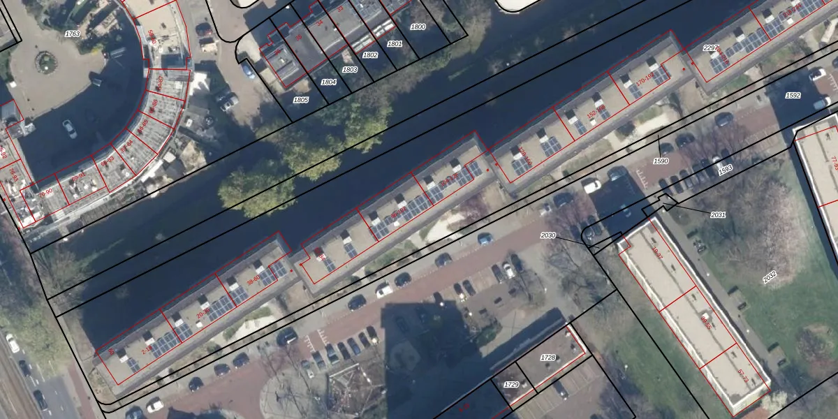 Het perceel waarop Catharinaland 98 staat heeft een oppervlakte van 8215 m². Dit is een zeer groot perceel. De perceeloppervlakte wordt geregistreerd door het Kadaster. Gedetailleerde informatie over de maten van dit perceel kunt u vinden in het rapport Kadastrale kaart met maatvoering van Catharinaland 98.