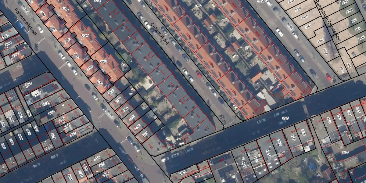 Het perceel waarop Celsiusstraat 22 staat heeft een oppervlakte van 4482 m². Dit is een zeer groot perceel. De perceeloppervlakte wordt geregistreerd door het Kadaster. Gedetailleerde informatie over de maten van dit perceel kunt u vinden in het rapport Kadastrale kaart met maatvoering van Celsiusstraat 22.