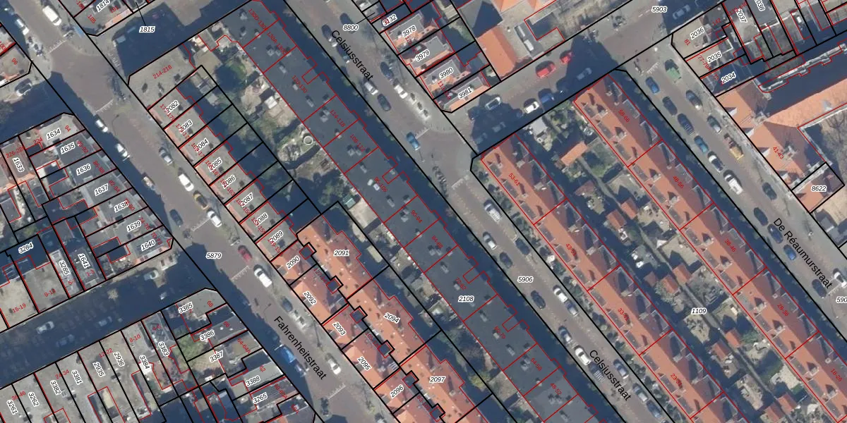 Het perceel waarop Celsiusstraat 94 staat heeft een oppervlakte van 4482 m². Dit is een zeer groot perceel. De perceeloppervlakte wordt geregistreerd door het Kadaster. Gedetailleerde informatie over de maten van dit perceel kunt u vinden in het rapport Kadastrale kaart met maatvoering van Celsiusstraat 94.