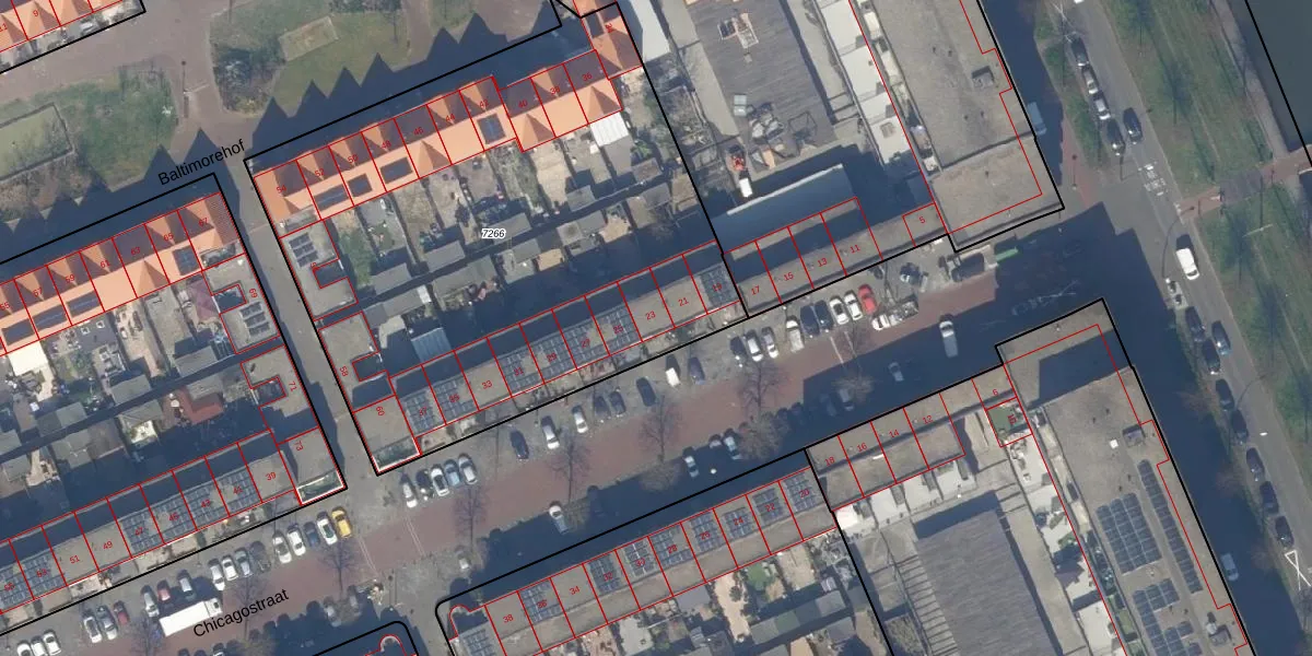 Het perceel waarop Chicagostraat 23 staat heeft een oppervlakte van 3225 m². Dit is een zeer groot perceel. De perceeloppervlakte wordt geregistreerd door het Kadaster. Gedetailleerde informatie over de maten van dit perceel kunt u vinden in het rapport Kadastrale kaart met maatvoering van Chicagostraat 23.