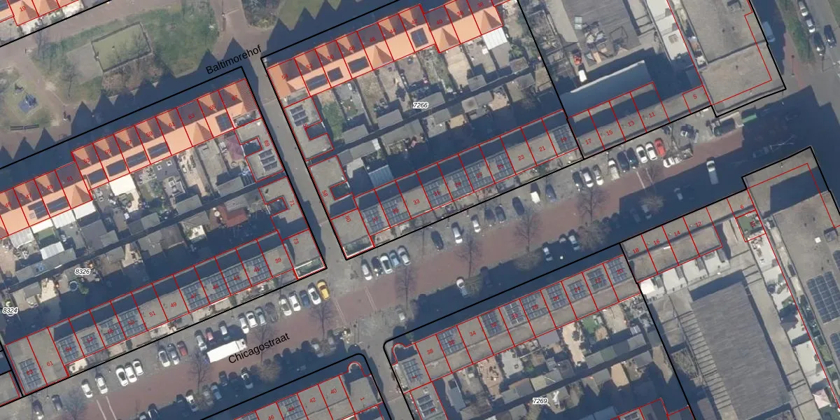 Het perceel waarop Chicagostraat 33 staat heeft een oppervlakte van 3225 m². Dit is een zeer groot perceel. De perceeloppervlakte wordt geregistreerd door het Kadaster. Gedetailleerde informatie over de maten van dit perceel kunt u vinden in het rapport Kadastrale kaart met maatvoering van Chicagostraat 33.