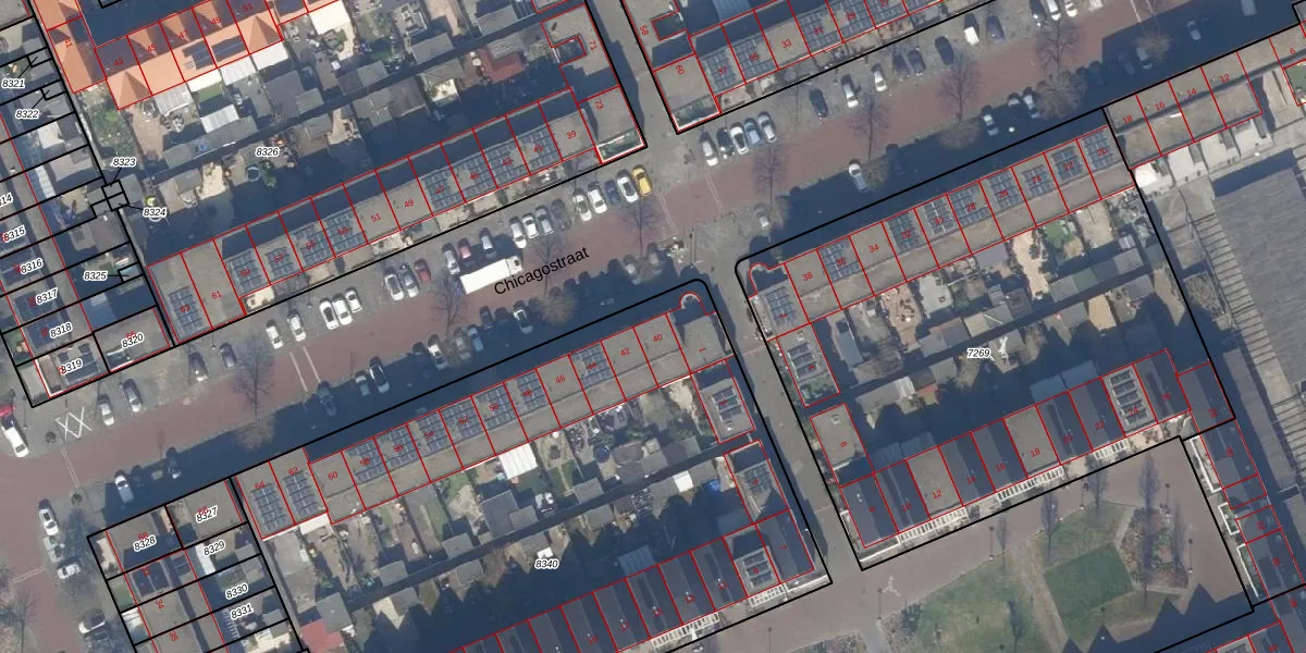 Het perceel waarop Chicagostraat 40 staat heeft een oppervlakte van 4082 m². Dit is een zeer groot perceel. De perceeloppervlakte wordt geregistreerd door het Kadaster. Gedetailleerde informatie over de maten van dit perceel kunt u vinden in het rapport Kadastrale kaart met maatvoering van Chicagostraat 40.