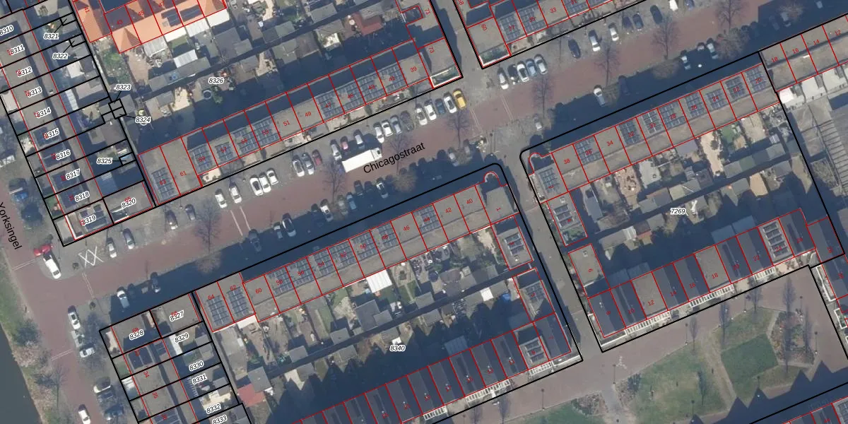 Het perceel waarop Chicagostraat 44 staat heeft een oppervlakte van 4082 m². Dit is een zeer groot perceel. De perceeloppervlakte wordt geregistreerd door het Kadaster. Gedetailleerde informatie over de maten van dit perceel kunt u vinden in het rapport Kadastrale kaart met maatvoering van Chicagostraat 44.