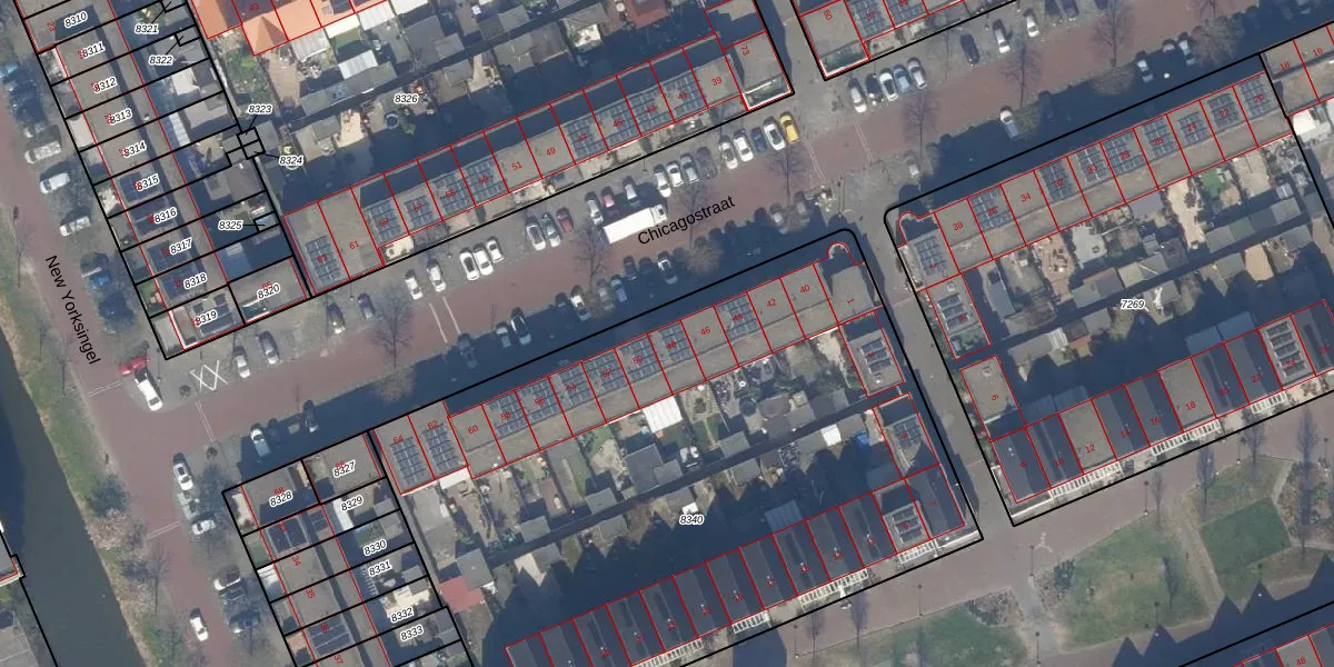 Het perceel waarop Chicagostraat 48 staat heeft een oppervlakte van 4082 m². Dit is een zeer groot perceel. De perceeloppervlakte wordt geregistreerd door het Kadaster. Gedetailleerde informatie over de maten van dit perceel kunt u vinden in het rapport Kadastrale kaart met maatvoering van Chicagostraat 48.
