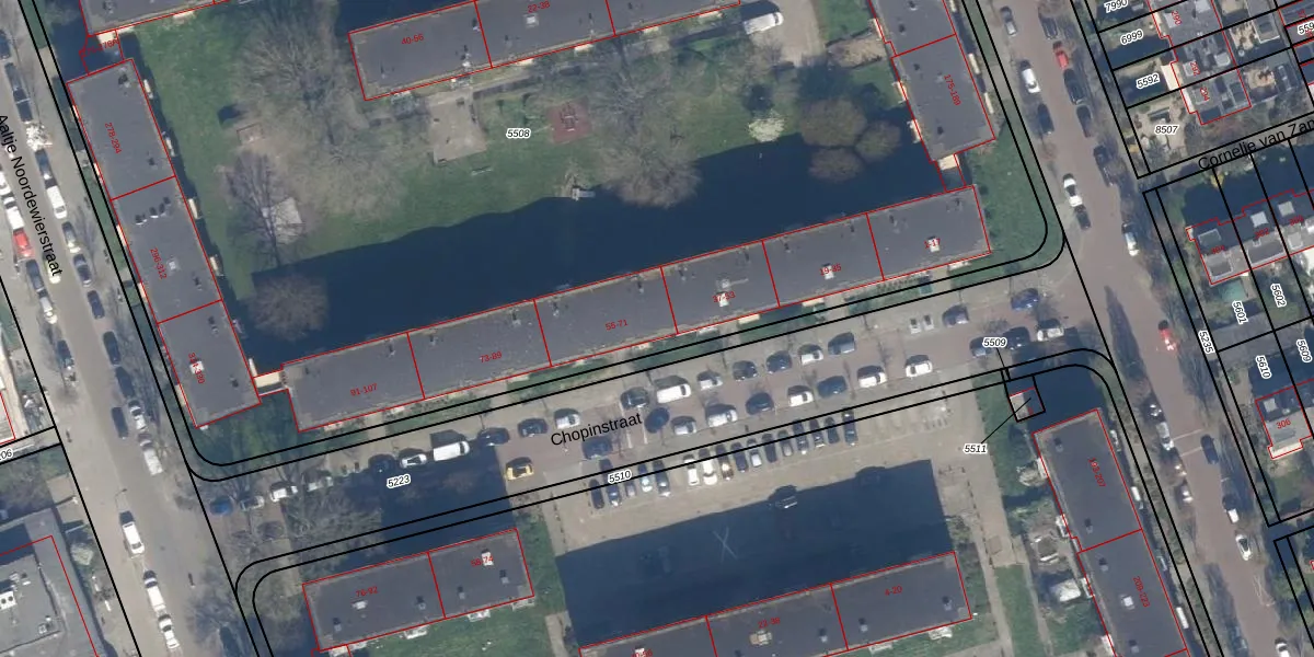 Chopinstraat 61 is gelegen op kadastraal perceel LDN03H5508. Deze kadastrale aanduiding is uniek en wordt gebruikt door het Kadaster om eigendomsrechten en andere zakelijke rechten vast te leggen. Het perceel maakt onderdeel uit van de kadastrale gemeente Loosduinen.