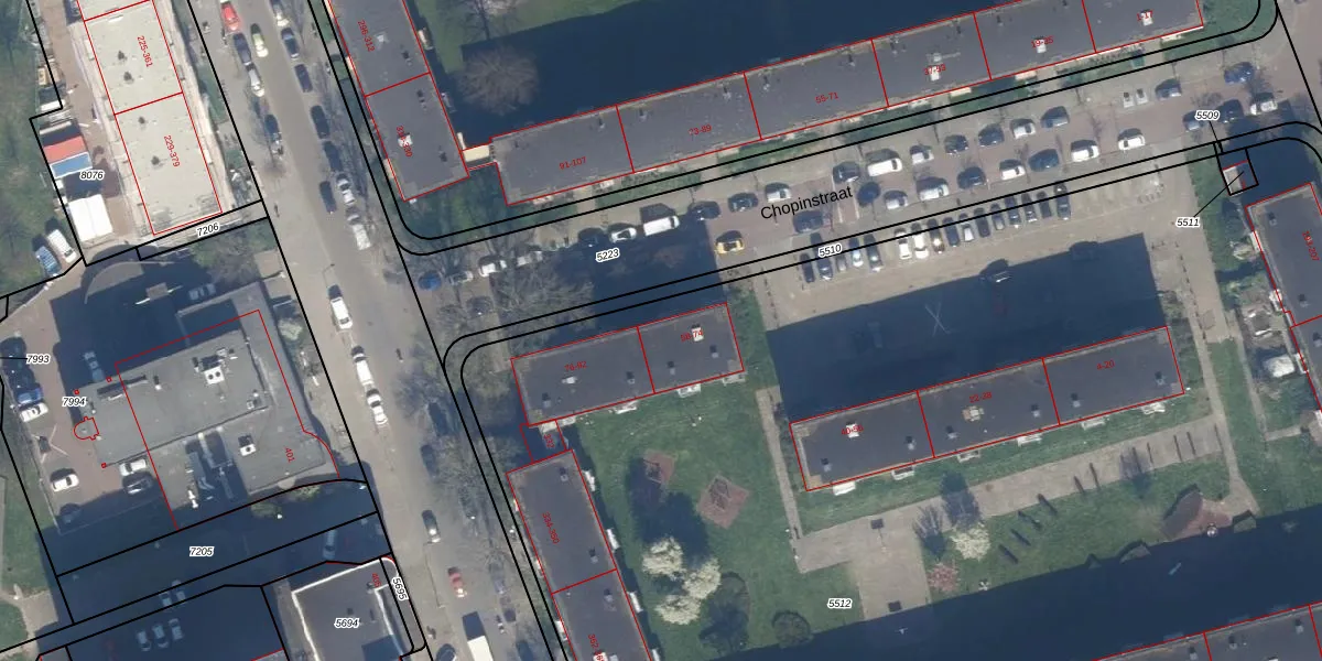 Het perceel waarop Chopinstraat 68 staat heeft een oppervlakte van 1,1 ha. Dit is een zeer groot perceel. De perceeloppervlakte wordt geregistreerd door het Kadaster. Gedetailleerde informatie over de maten van dit perceel kunt u vinden in het rapport Kadastrale kaart met maatvoering van Chopinstraat 68.