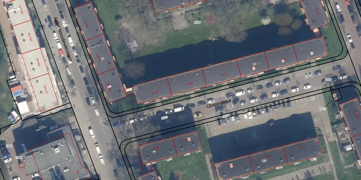 Het perceel waarop Chopinstraat 85 staat heeft een oppervlakte van 1,1 ha. Dit is een zeer groot perceel. De perceeloppervlakte wordt geregistreerd door het Kadaster. Gedetailleerde informatie over de maten van dit perceel kunt u vinden in het rapport Kadastrale kaart met maatvoering van Chopinstraat 85.