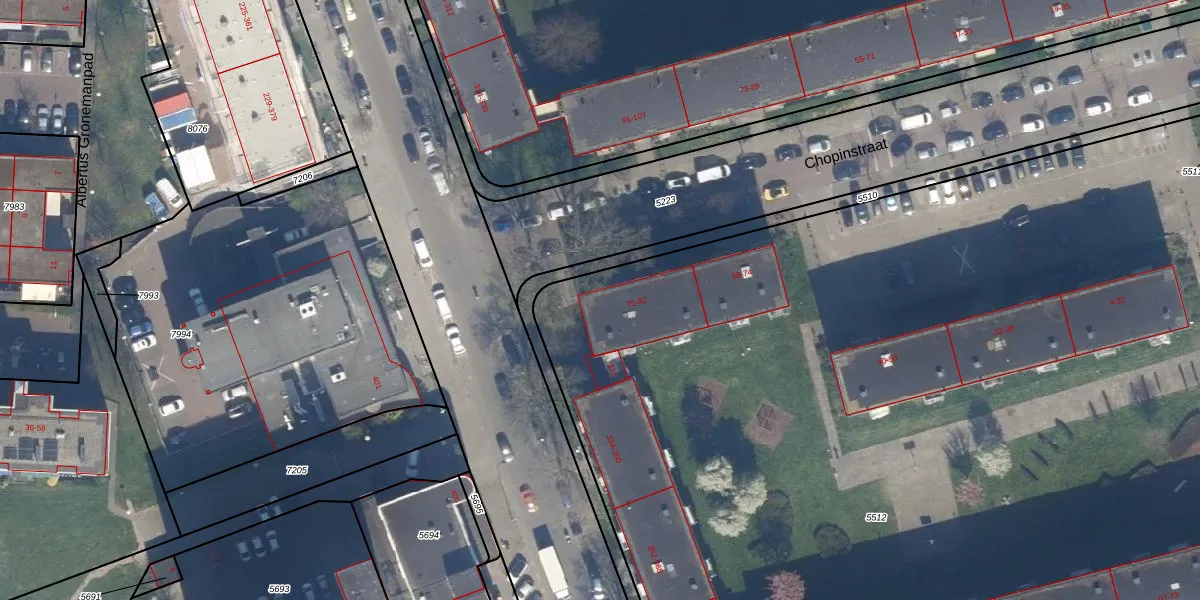 Het perceel waarop Chopinstraat 90 staat heeft een oppervlakte van 1,1 ha. Dit is een zeer groot perceel. De perceeloppervlakte wordt geregistreerd door het Kadaster. Gedetailleerde informatie over de maten van dit perceel kunt u vinden in het rapport Kadastrale kaart met maatvoering van Chopinstraat 90.