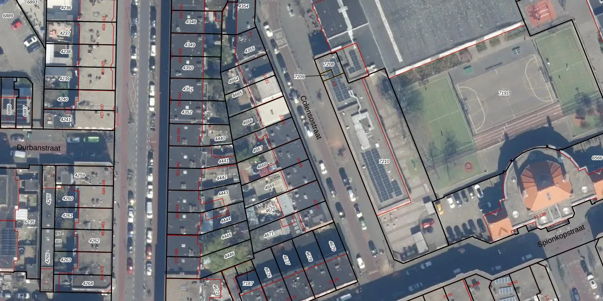 Het perceel waarop Colensostraat 39 staat heeft een oppervlakte van 175 m². Dit is een middelgroot perceel. De perceeloppervlakte wordt geregistreerd door het Kadaster. Gedetailleerde informatie over de maten van dit perceel kunt u vinden in het rapport Kadastrale kaart met maatvoering van Colensostraat 39.