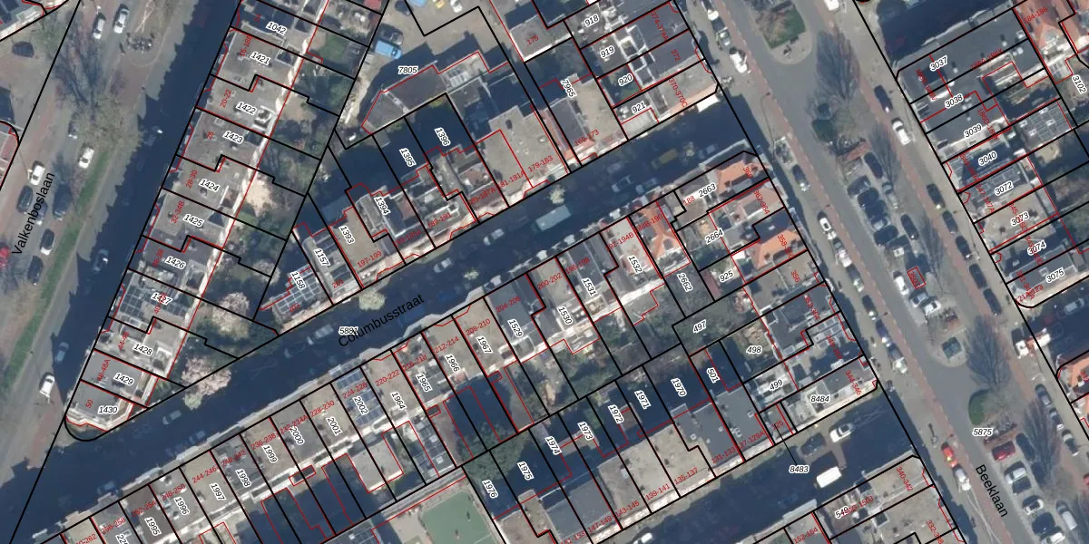 Het perceel waarop Columbusstraat 200 staat heeft een oppervlakte van 206 m². Dit is een middelgroot perceel. De perceeloppervlakte wordt geregistreerd door het Kadaster. Gedetailleerde informatie over de maten van dit perceel kunt u vinden in het rapport Kadastrale kaart met maatvoering van Columbusstraat 200.