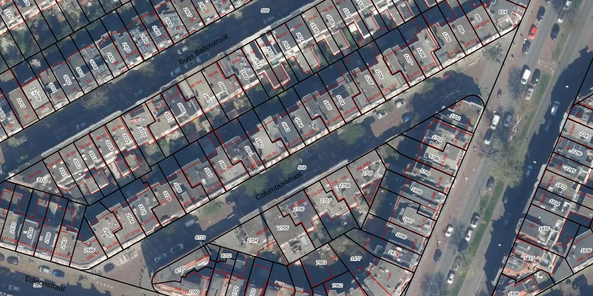 Het perceel waarop Columbusstraat 245 staat heeft een oppervlakte van 165 m². Dit is een middelgroot perceel. De perceeloppervlakte wordt geregistreerd door het Kadaster. Gedetailleerde informatie over de maten van dit perceel kunt u vinden in het rapport Kadastrale kaart met maatvoering van Columbusstraat 245.