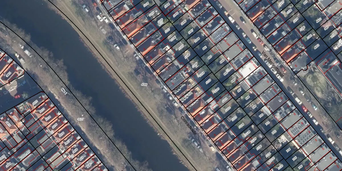 Conradkade 55 is gelegen op kadastraal perceel GVH15W1109. Deze kadastrale aanduiding is uniek en wordt gebruikt door het Kadaster om eigendomsrechten en andere zakelijke rechten vast te leggen. Het perceel maakt onderdeel uit van de kadastrale gemeente 's-Gravenhage.