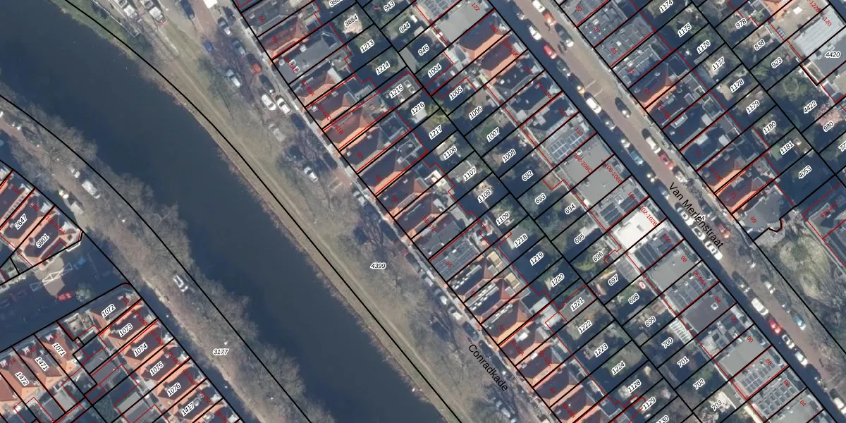 Conradkade 57-F is gelegen op kadastraal perceel GVH15W1107. Deze kadastrale aanduiding is uniek en wordt gebruikt door het Kadaster om eigendomsrechten en andere zakelijke rechten vast te leggen. Het perceel maakt onderdeel uit van de kadastrale gemeente 's-Gravenhage.