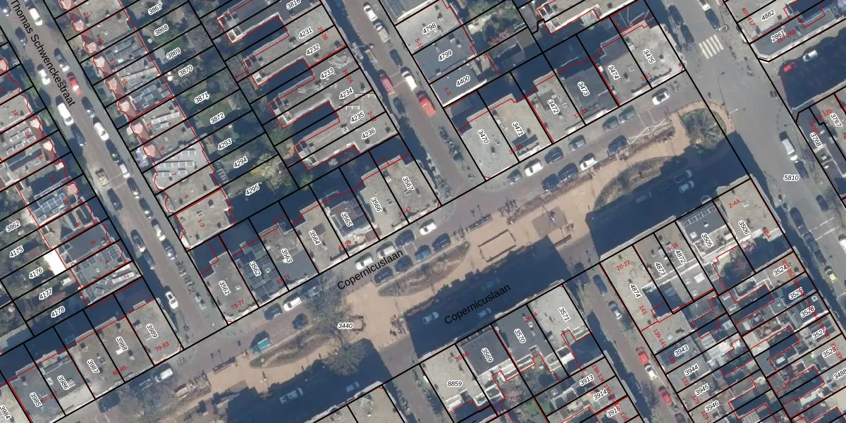 Het perceel waarop Copernicuslaan 39 staat heeft een oppervlakte van 166 m². Dit is een middelgroot perceel. De perceeloppervlakte wordt geregistreerd door het Kadaster. Gedetailleerde informatie over de maten van dit perceel kunt u vinden in het rapport Kadastrale kaart met maatvoering van Copernicuslaan 39.
