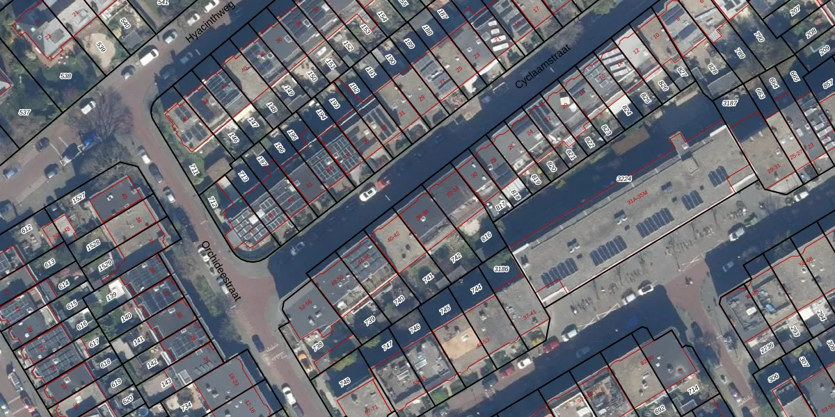 Het perceel waarop Cyclaamstraat 38 staat heeft een oppervlakte van 204 m². Dit is een middelgroot perceel. De perceeloppervlakte wordt geregistreerd door het Kadaster. Gedetailleerde informatie over de maten van dit perceel kunt u vinden in het rapport Kadastrale kaart met maatvoering van Cyclaamstraat 38.
