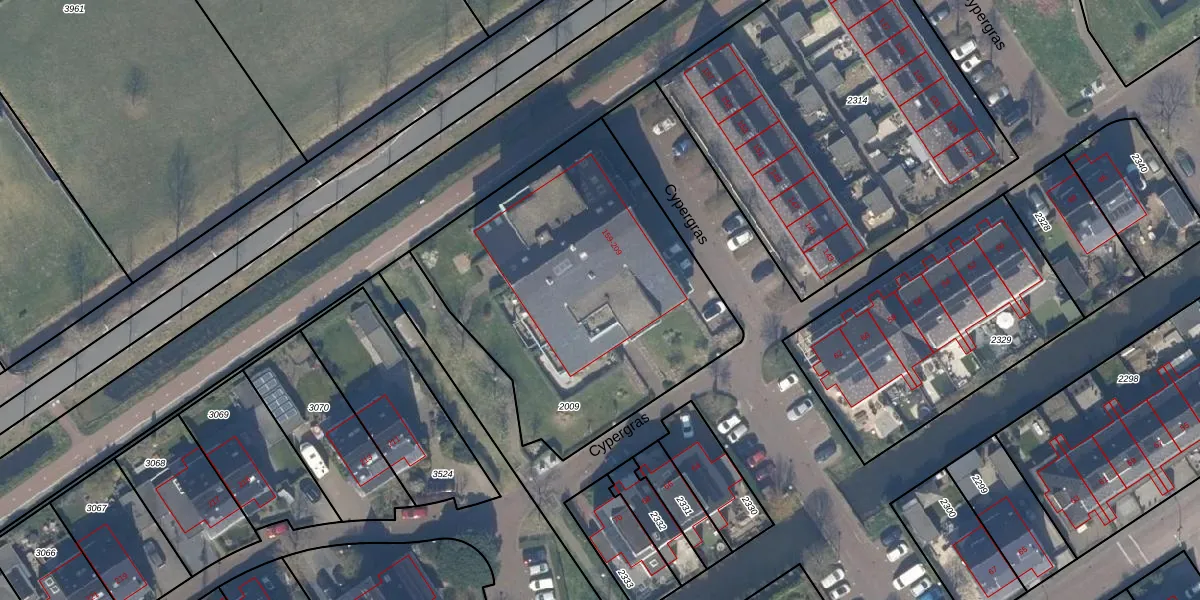 Het perceel waarop Cypergras 197 staat heeft een oppervlakte van 1675 m². Dit is een zeer groot perceel. De perceeloppervlakte wordt geregistreerd door het Kadaster. Gedetailleerde informatie over de maten van dit perceel kunt u vinden in het rapport Kadastrale kaart met maatvoering van Cypergras 197.