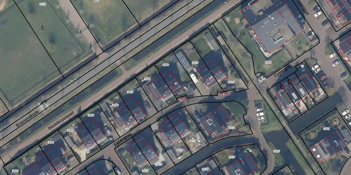 Het perceel waarop Cypergras 215 staat heeft een oppervlakte van 345 m². Dit is een groot perceel. De perceeloppervlakte wordt geregistreerd door het Kadaster. Gedetailleerde informatie over de maten van dit perceel kunt u vinden in het rapport Kadastrale kaart met maatvoering van Cypergras 215.
