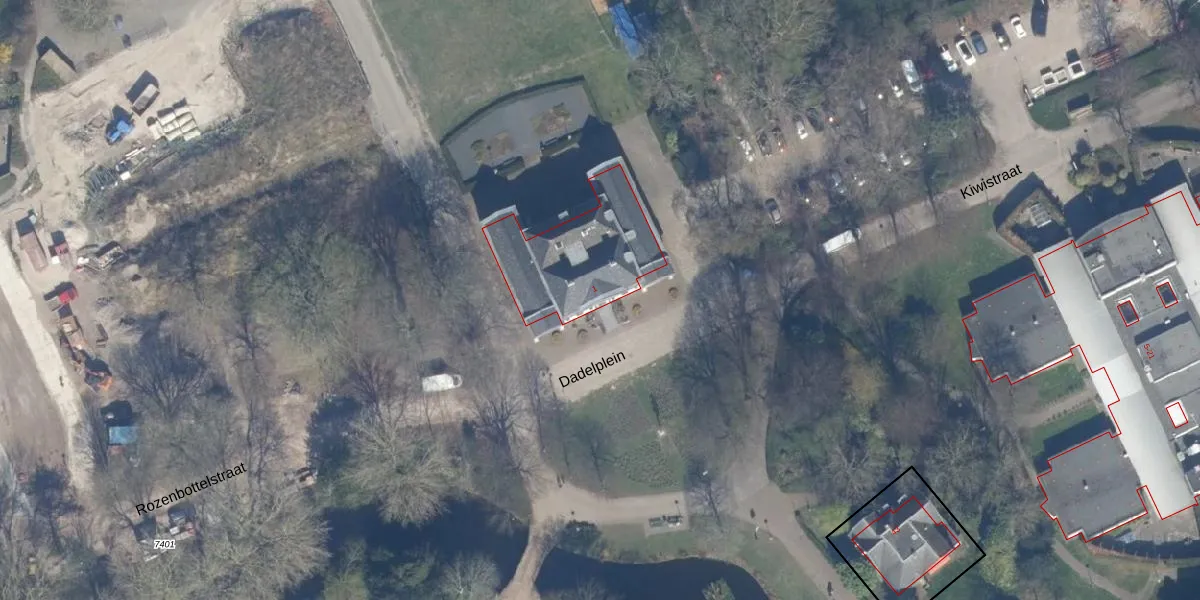 Het perceel waarop Dadelplein 1 staat heeft een oppervlakte van 14,0 ha. Dit is een zeer groot perceel. De perceeloppervlakte wordt geregistreerd door het Kadaster. Gedetailleerde informatie over de maten van dit perceel kunt u vinden in het rapport Kadastrale kaart met maatvoering van Dadelplein 1.